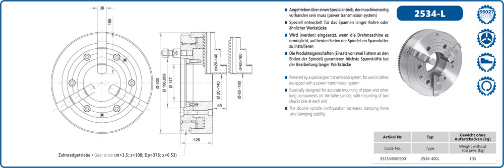 - Uzun iş parçalarında yüksek kavrama gücünü garanti eder